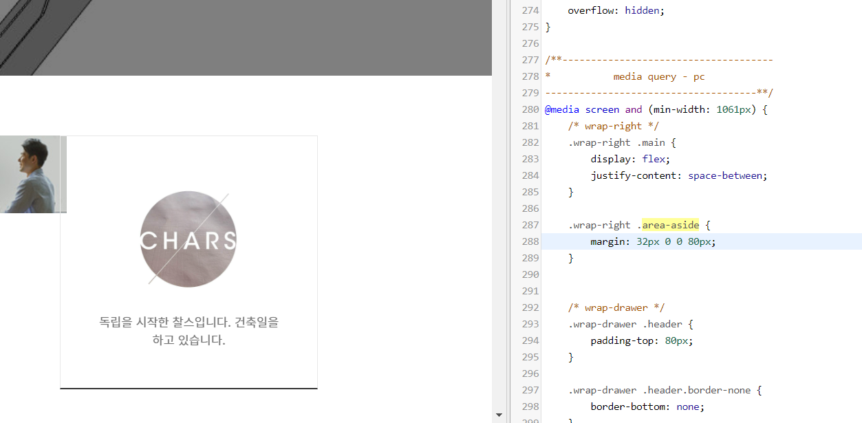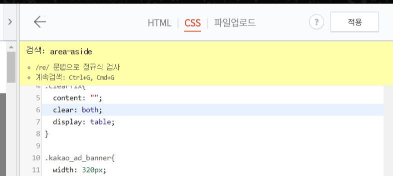3. ctrl+f로 "area-aside"를 찾아서 아래 있는 "margin" 부분의 마지막 숫자를 늘려준다.