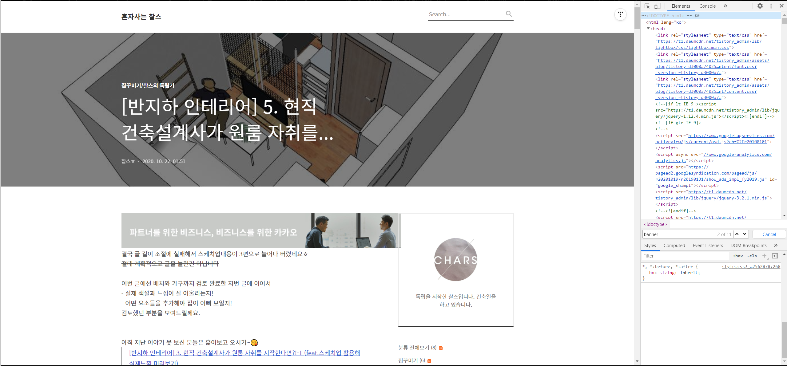우선 CSS 수정을 위해서는 구글의 개발자 도구를 봐야 되는데요,