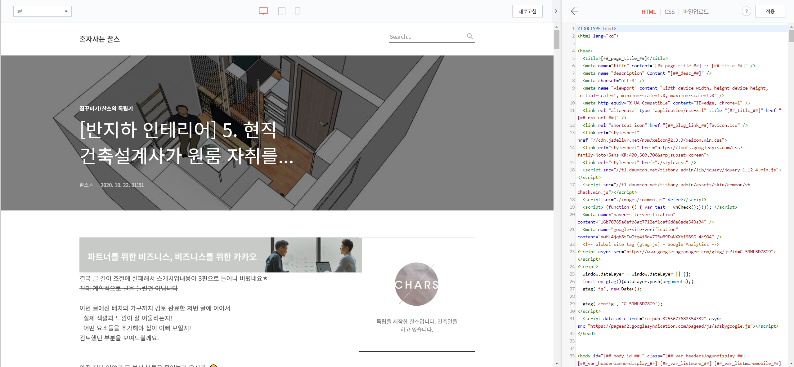 들어와서 "html 편집"을 누르게 되면 또 어려운 문자들이 오른쪽에 위치해 있는데요,