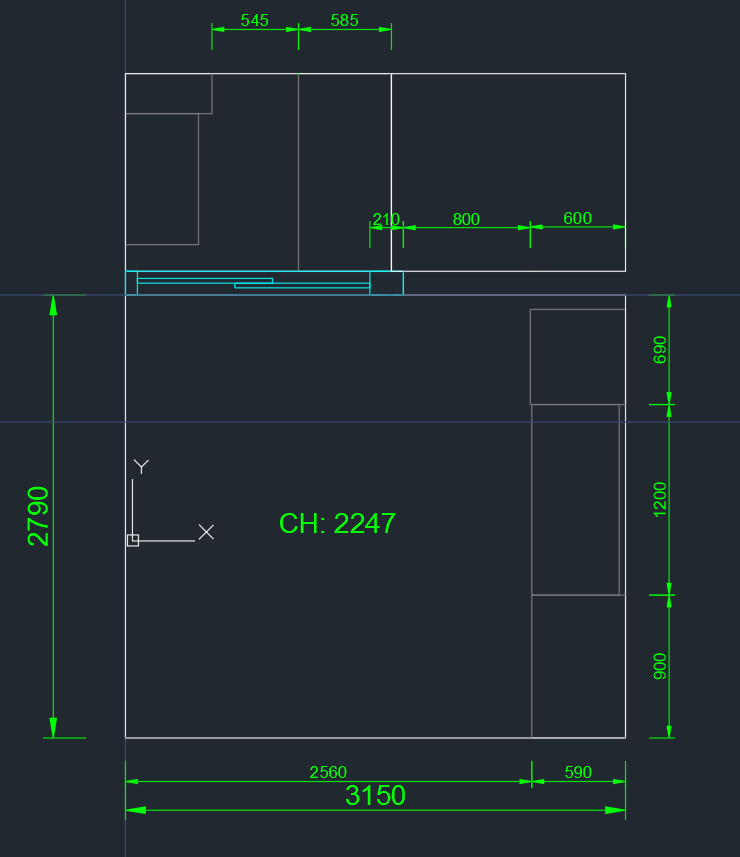 실측한 도면을 집에 와서 일단 캐드로 옮겨봤다. 새삼스럽지만 정말 작았다.