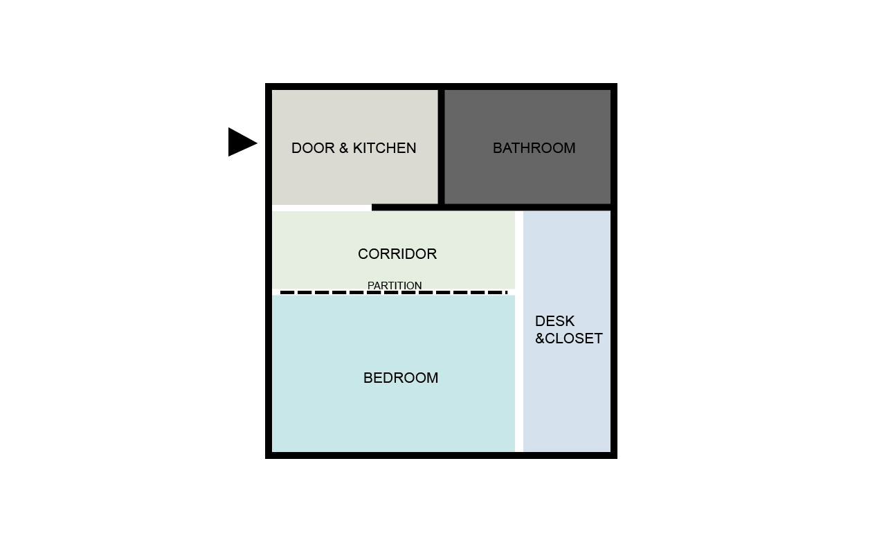 - 방 중간에 파티션을 두어 복도와 거실을 분리
