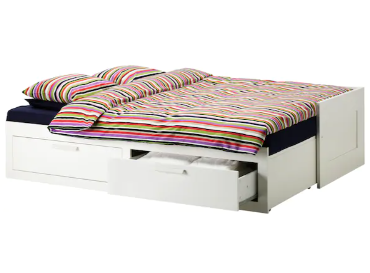 이케아에서 출시한 '데이베드 프레임'의 침대다. 이렇게 접혀있을때의 폭이 위 대안1에서 언급한 800mm이 나온다. 나머지 공간 활용에 적정한 사이즈다.