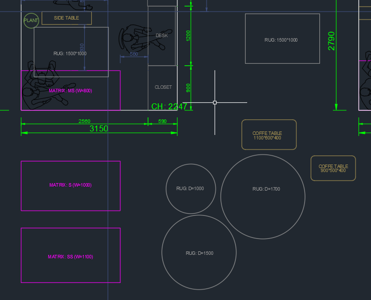실측자료를 도면화시킨 이후에는 여기에 넣은 가구들의 실사이즈 역시 도면화시켜본다.