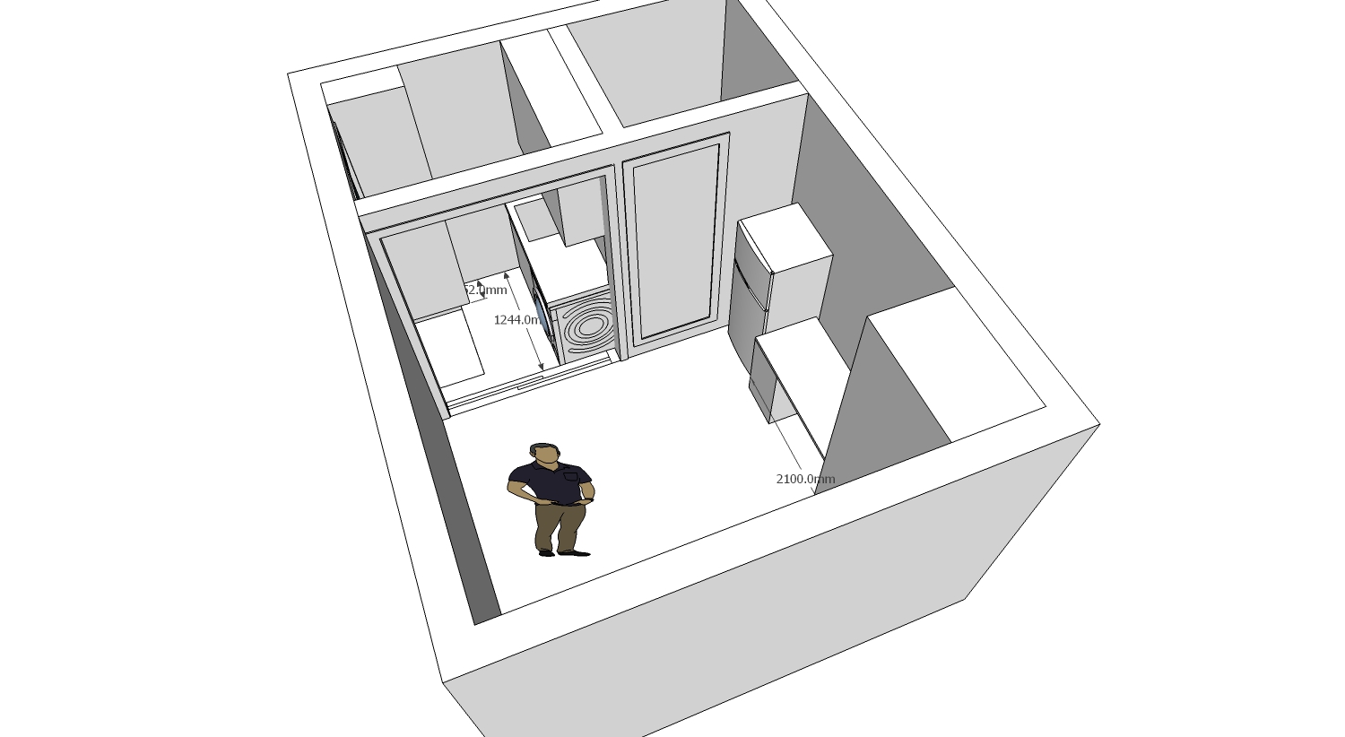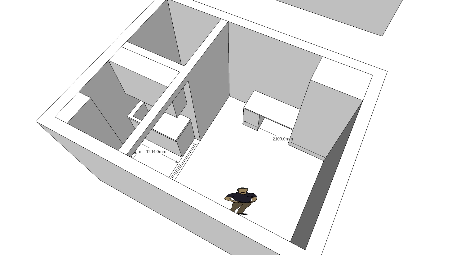 실제 느낌을 보기 위해 이 방을 스케치업으로 올려봤어요.